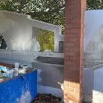 Realizado sobre 12 metros en muros exteriores del pabellón polideportivo, sito en la zona del paseo de “La sèquia” y prolongación reciente de la misma.