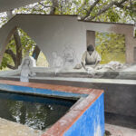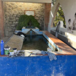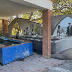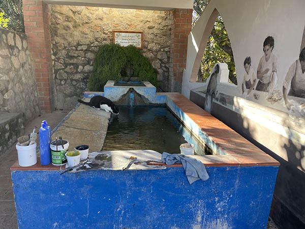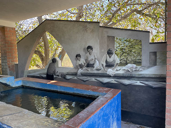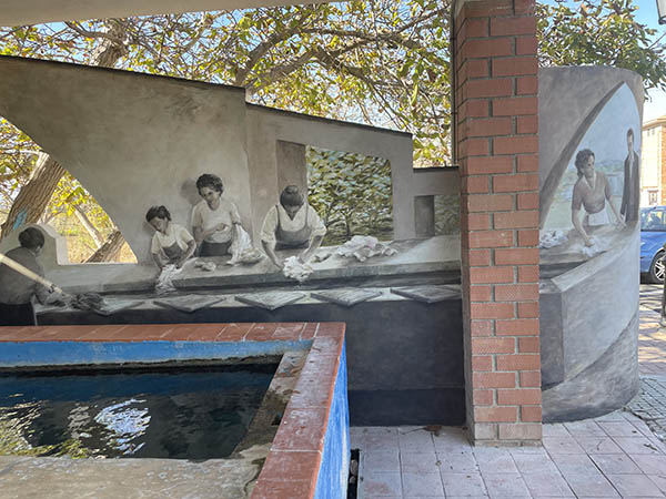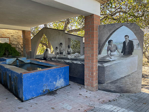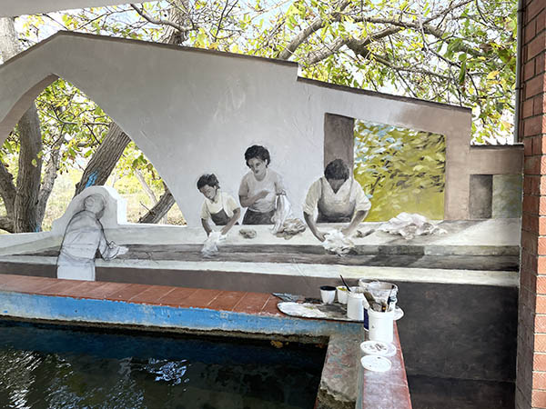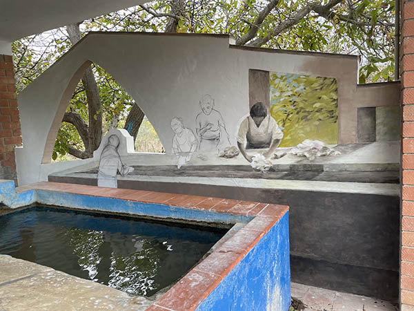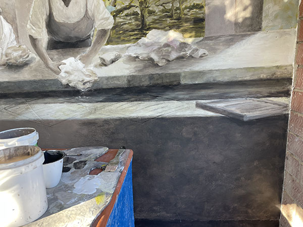 Presenta la entrada de Bufali. Se realizaron los muros con formas gaudianas apropiadas para la técnica usada. Una extensión de 10 m. recrea escenas vinculadas al lugar.